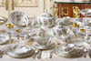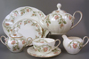 This repeated floral motif is rich with flowers and leaves, and was created especially for collectors who admire Eastern motifs. Its spring-green pattern and golden sparkles in the blossoms make one dive into a world of Scheherazade's fairy tales and treasure hunts. Persia is available with or without Gold Line edges; some items are available in Accent - with multiple small flowers and leaves. |